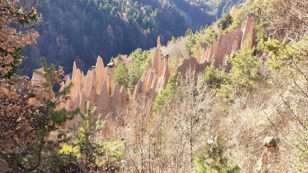 Mit der Seilbahn auf den Ritten, einschließlich Wanderung zu den Erdpyramiden und Fahrt mit der Rittner Schmalspurbahn zur Endstation Klobenstein, dann wieder nach unten ins buten Weihnachtstreiben.
