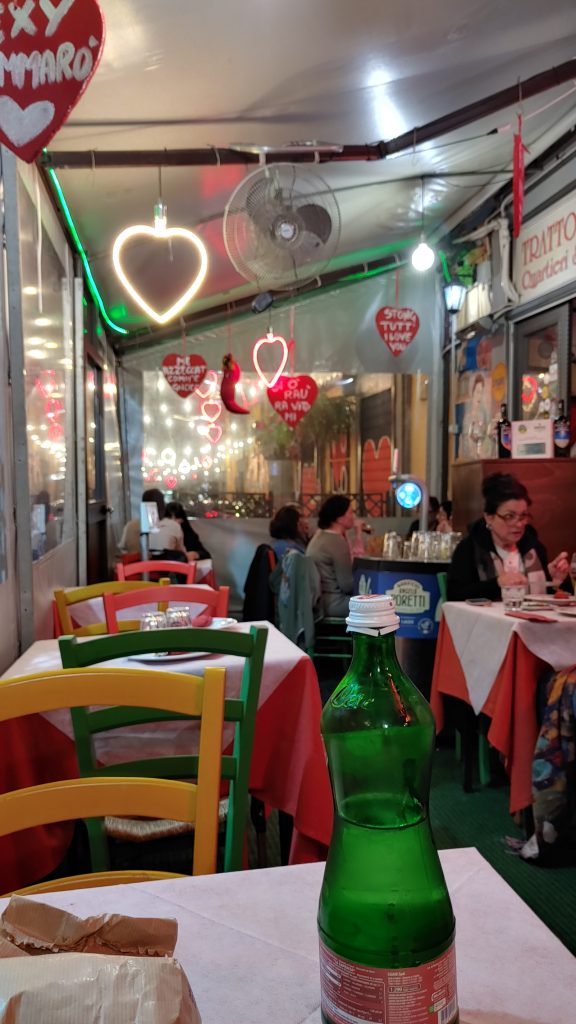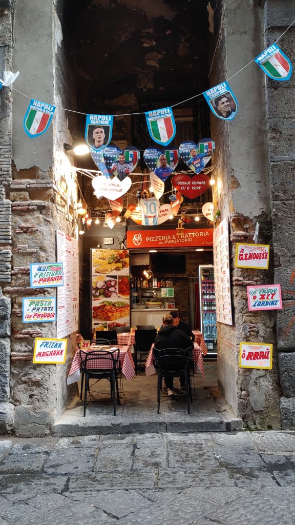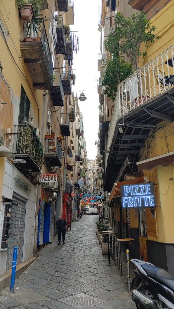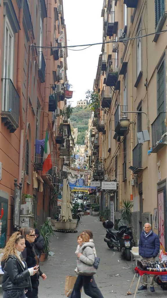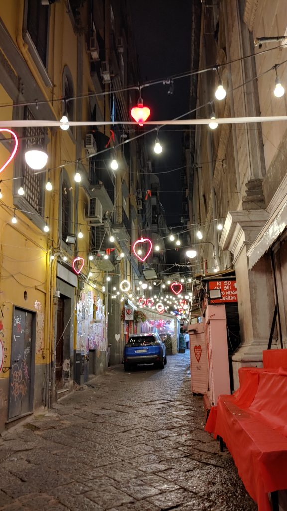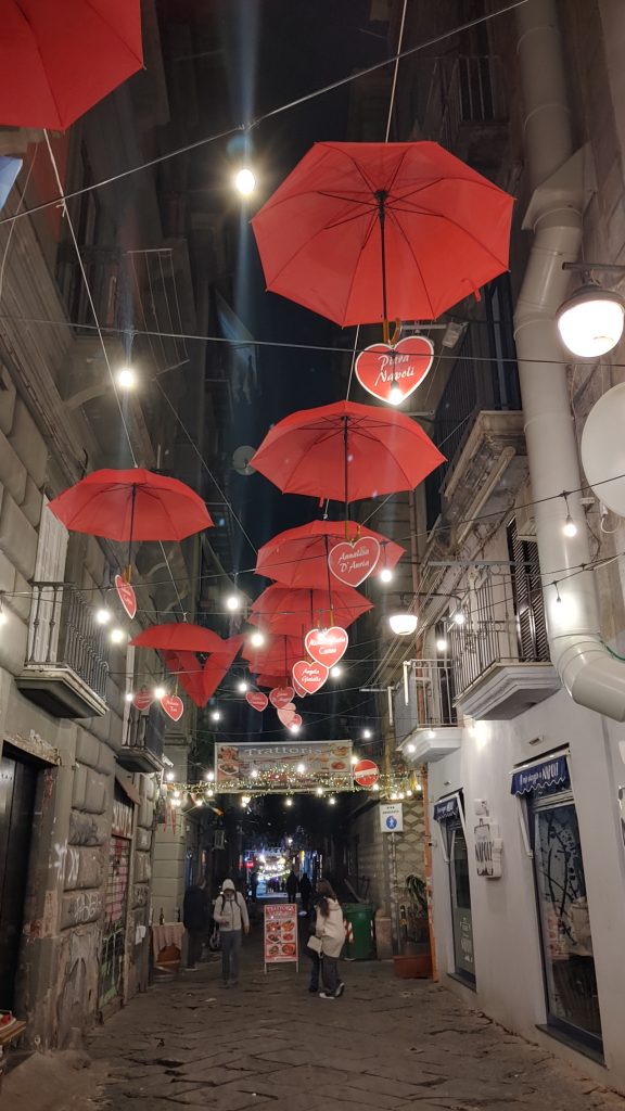 Im Rahmen einer Geschäftsreise war ich Ende Februar 2024 in Neapel. Für die Stadtbesichtigung hatte ich nur den Nachmittag an Tag meiner Ankunft, und zwei Abende – aber wieder mal bin ich wahnsinnig viel gelaufen und war von der Stadt begeistert! Mein Hotel war in der Via Toledo, der Fußgängerzone und Geschäftsstraße, ich bin den Spaccanapoli entlang gelaufen und habe die Quartieri Spagnoli erkundet, Galleria Umberto und Einiges mehr. Auch als Frau allein fühlte ich mich sicher, es hat sich (im Vergleich zu meinem letzten Besuch vor ca. 30 Jahren) viel getan in touristischer Hinsicht.